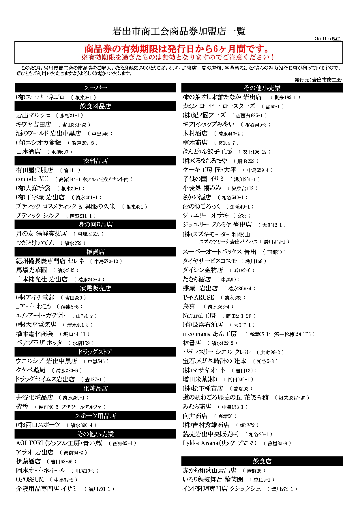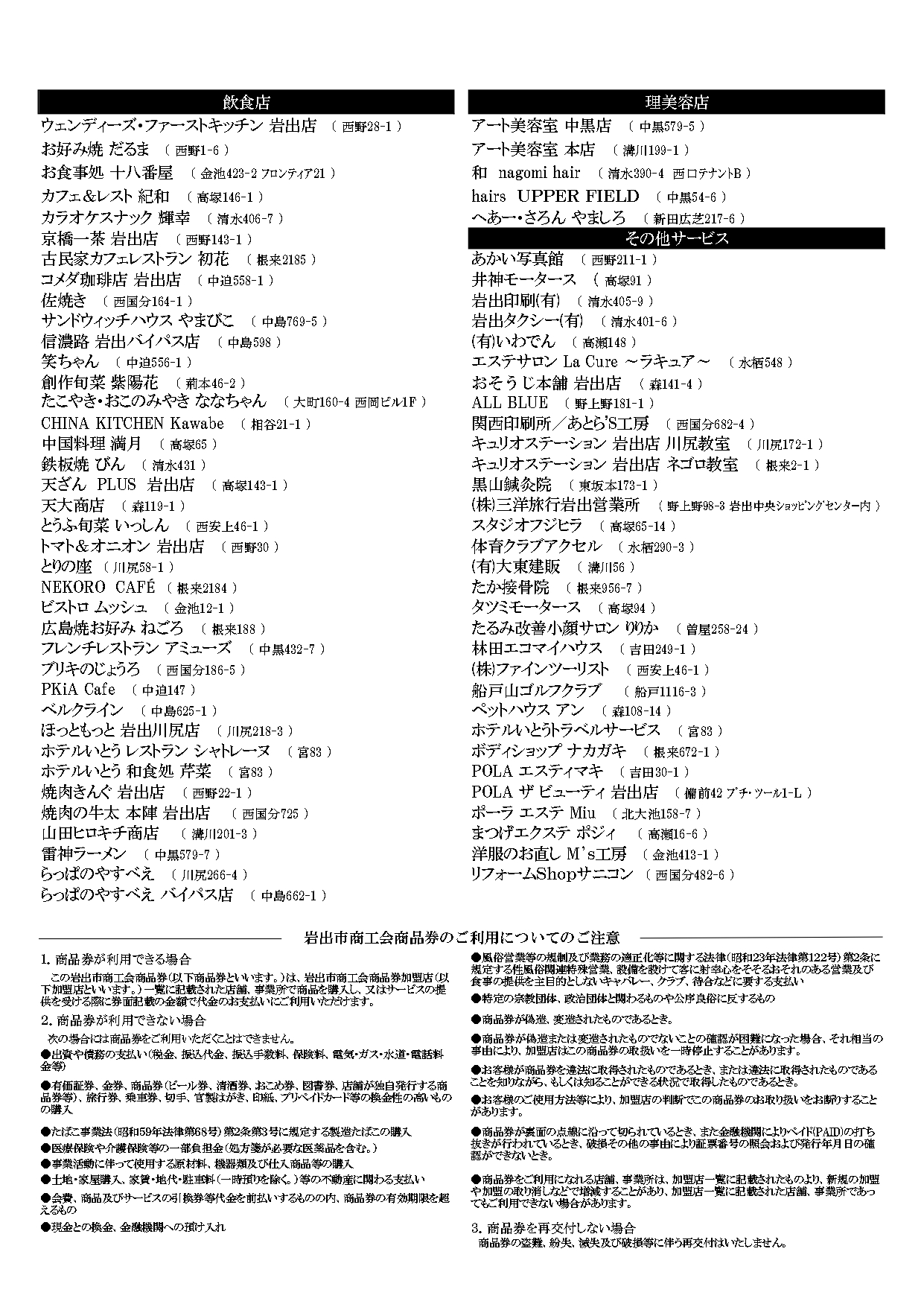【注意】”1割お得な”岩出市商工会商品券はチラシに記載の岩出市商工会商品券加盟店でのみご使用いただけます。